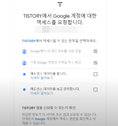구글 계정에 대한 액세스를 요청합니다