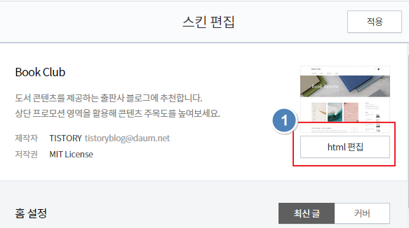 꾸미기의 스킨편집으로 이동합니다.