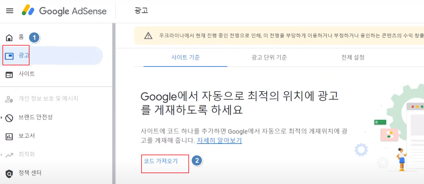 애드센스에 사이트 연결하기
