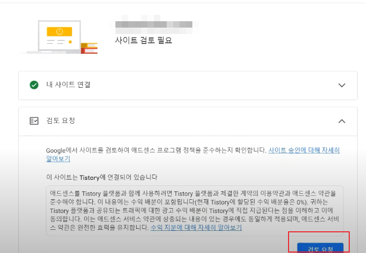 그러면 '사이트 검토 필요'를 확인할 수 있습니다.