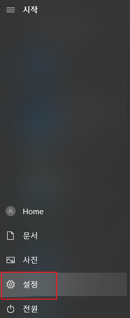 작업 표시줄의 시작 메뉴를 누르고 설정 아이콘을 클릭하거나 단축키 [윈도 키 + I]를 눌러도 가능합니다.