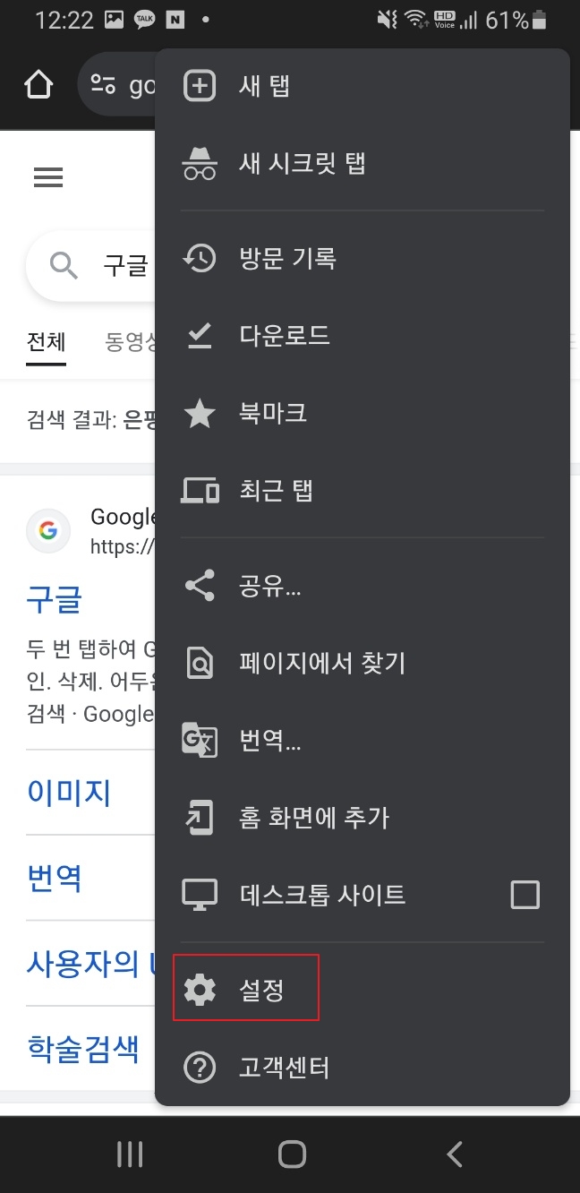 아랫쪽 톱니바퀴 모양의 [설정]을 눌러주세요.